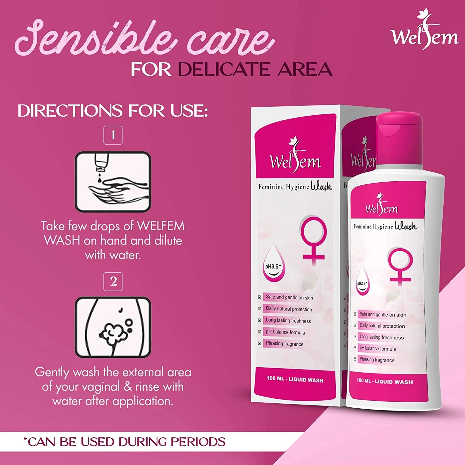 Welfem Feminine Intimate Hygiene Wash to balance pH - 100ml